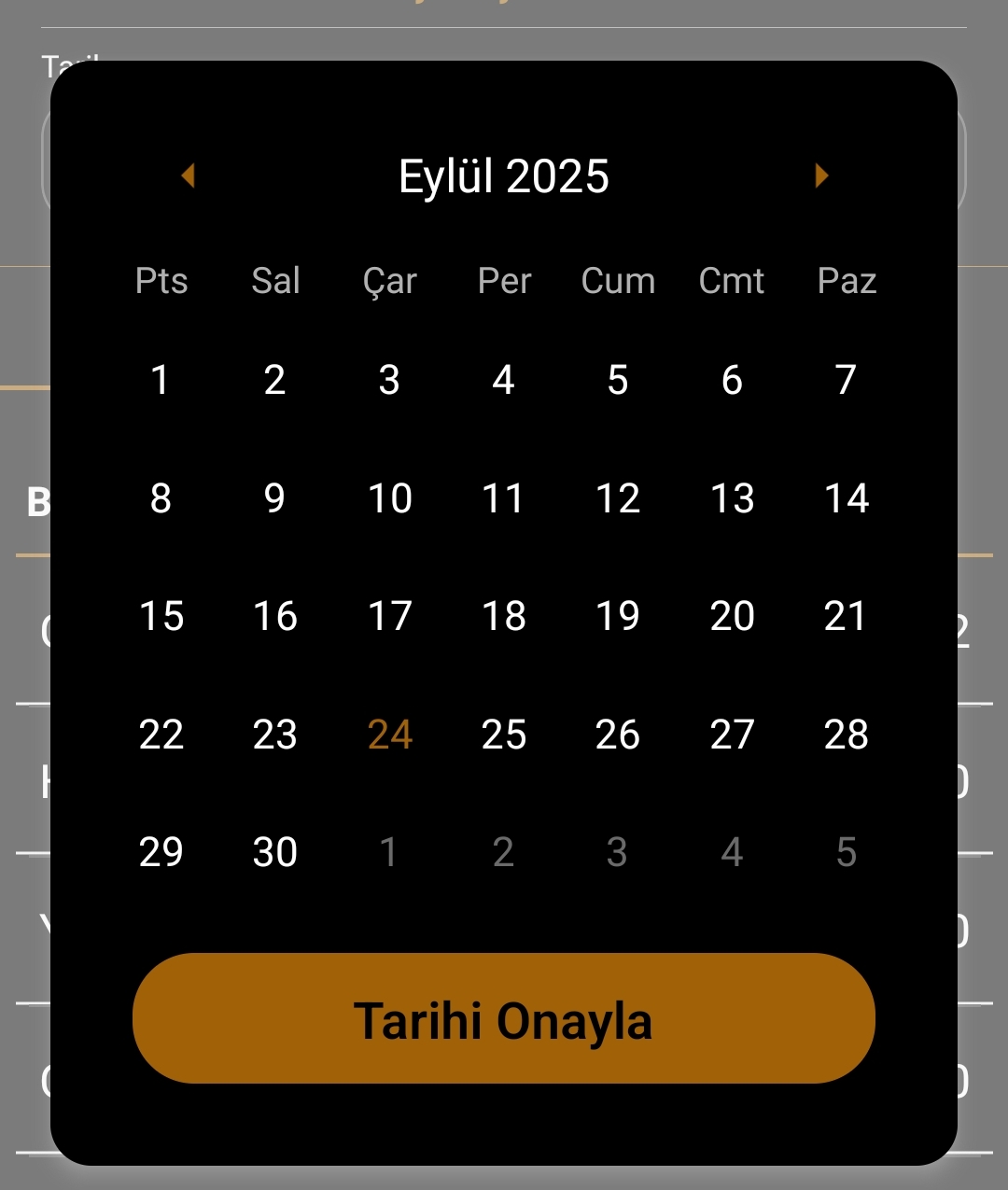 firstDay={1} // Haftanın ilk günü Pazartesi