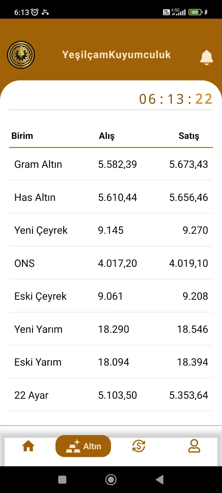 Yeşilçam Kuyumculuk: Canlı Kur Takibi ve Mobil/Web Projesi